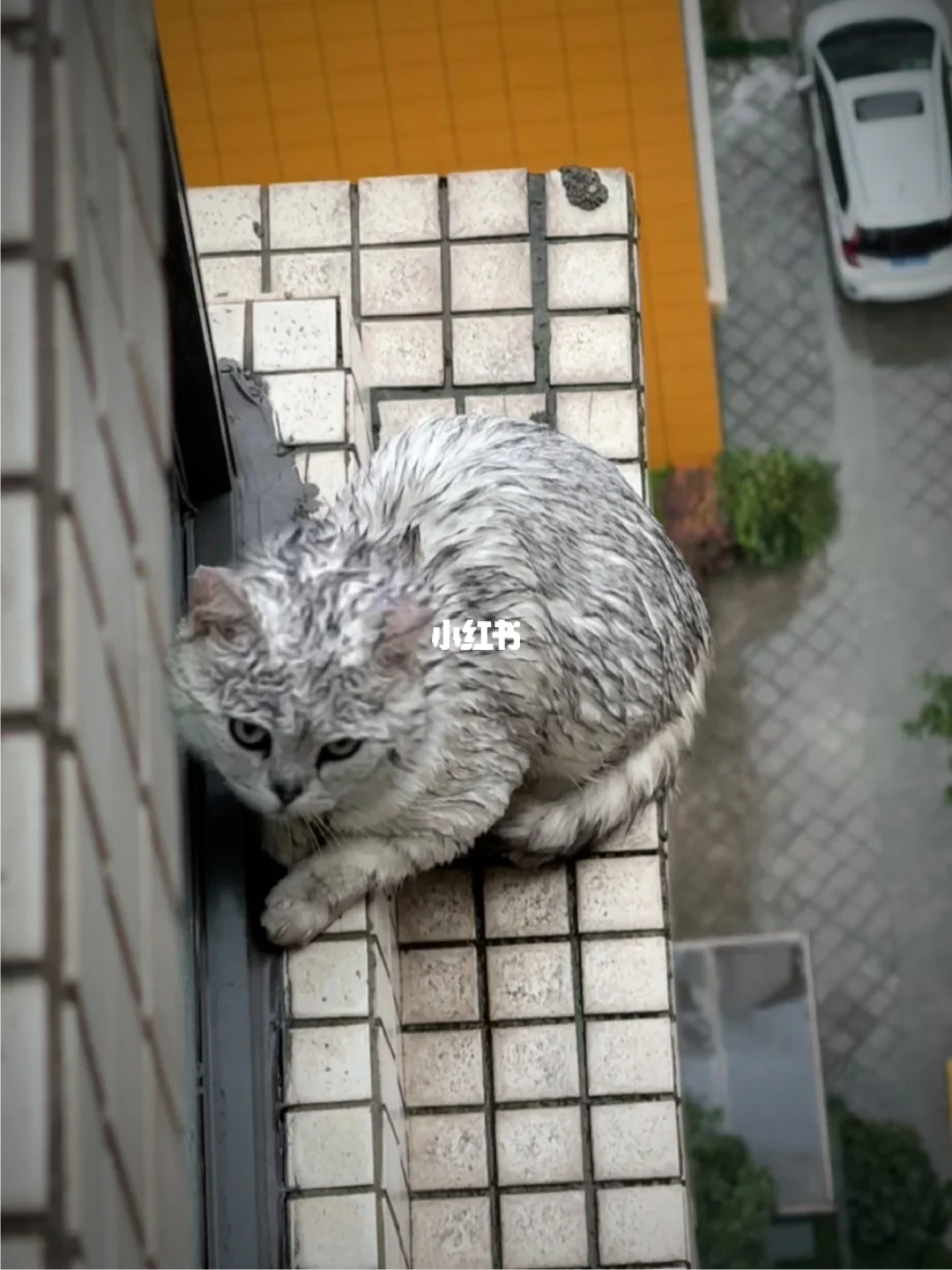 银渐层暴雨被困26楼,随时可能打滑坠楼!
